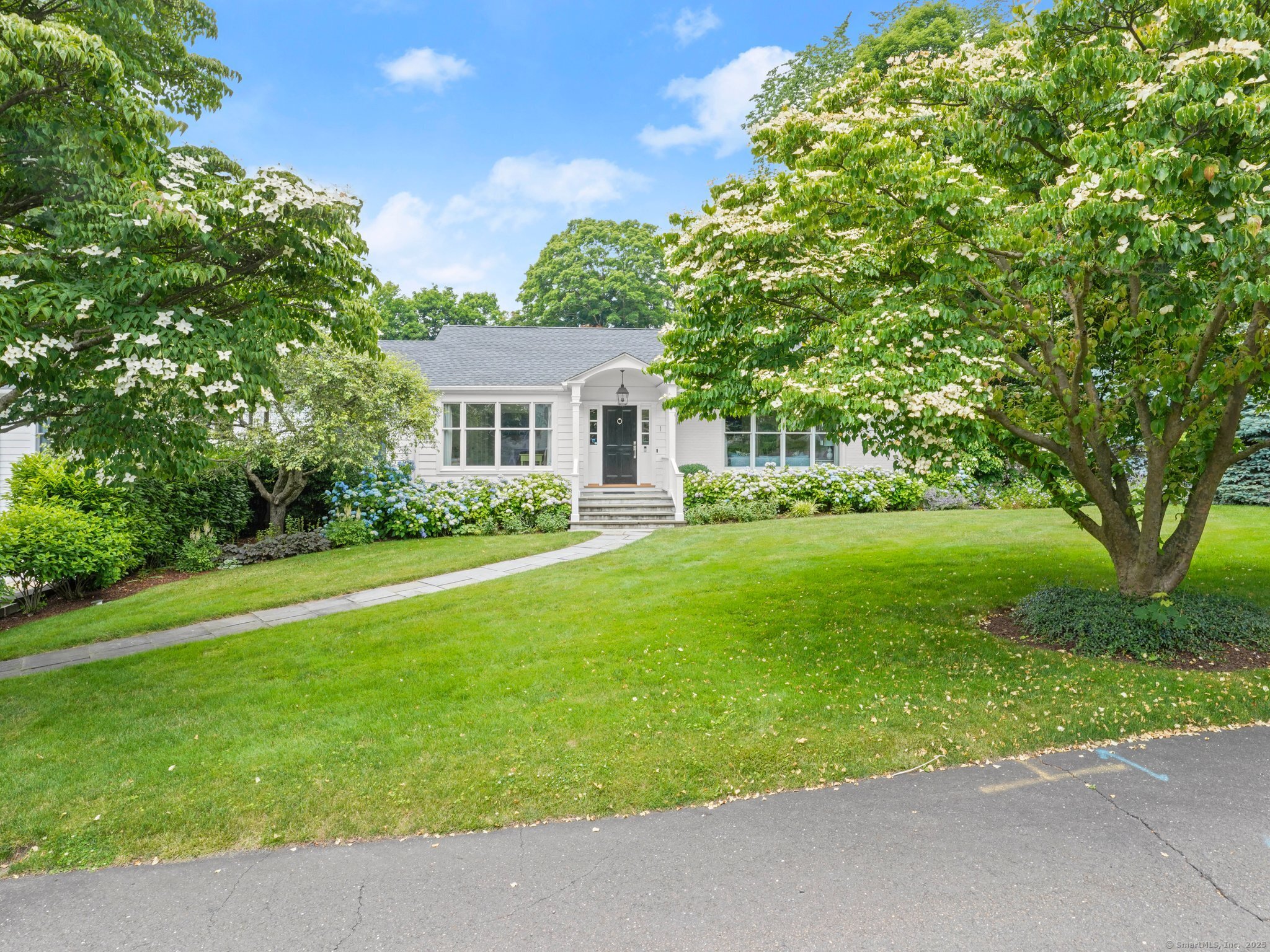 This stunning beautifully renovated home is moments to downtown Greenwich. Chic & impeccably maintained show house is move-in ready & sits on a beautifully landscaped private corner lot with fenced yard. There is an open, flexible floor plan with hardwood floors & oversized windows. The gorgeous & bright kitchen has attractive marble counter tops & an adjacent dining area. French doors lead to a large deck & level yard. Also on this level is the sunny living room with fireplace, 3 bedrooms, including the lovely primary, 2 full baths, one half bath, playroom, dining room/office & laundry. Walkout garden level features bedroom with full bath. Attached extra deep two-car garage has storage space. Close to Brunswick, Greenwich Academy & North Street schools. Special & very nice.