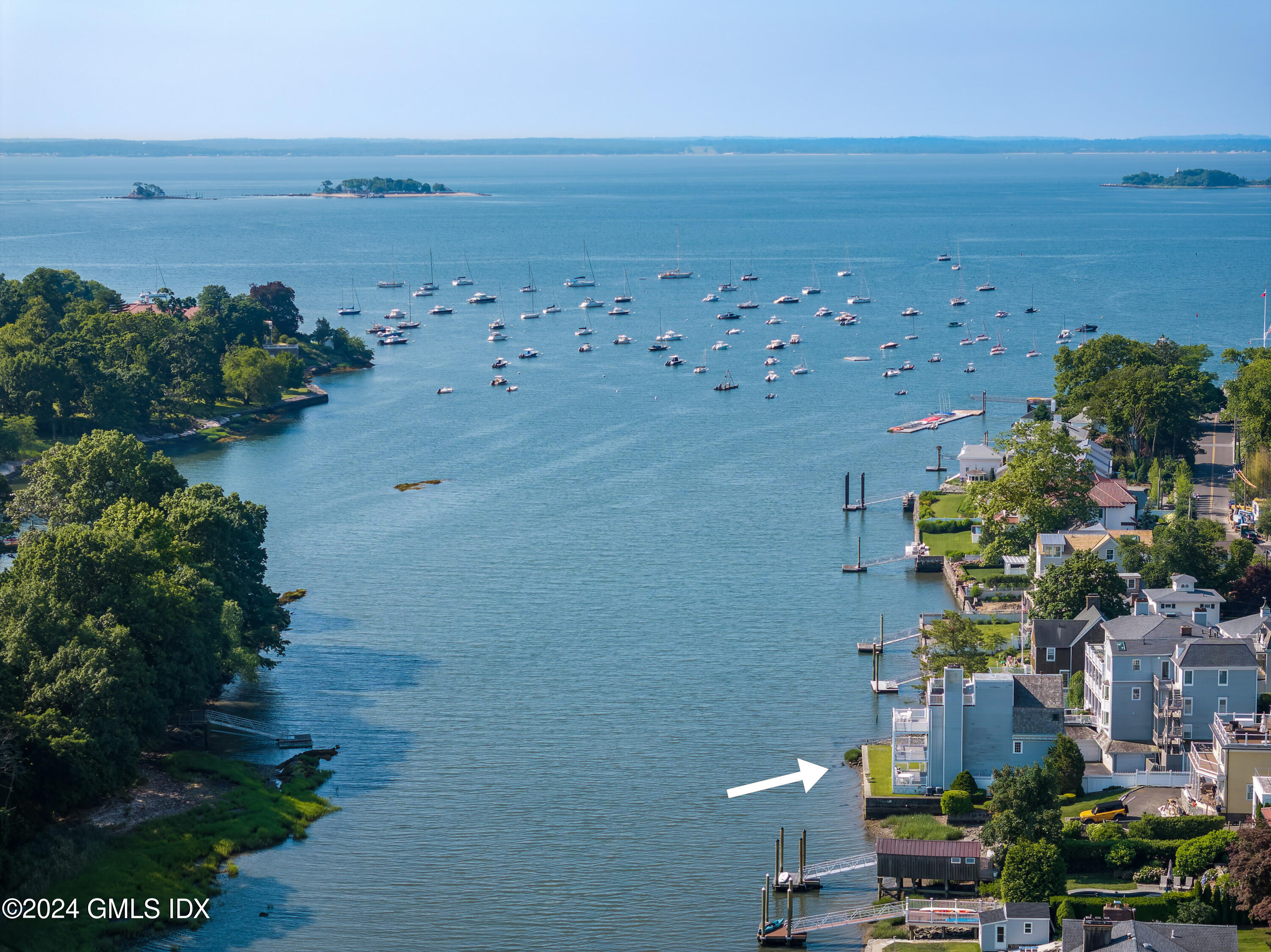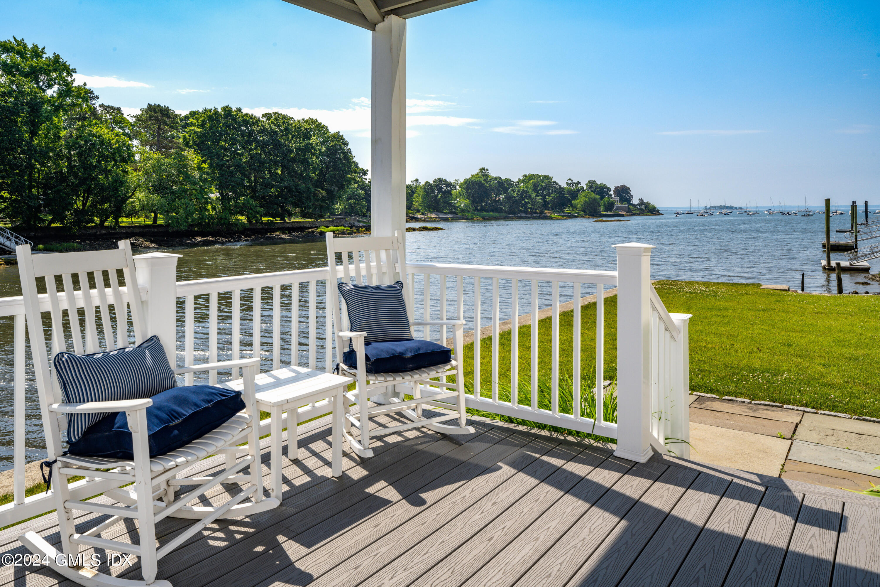 Exquisite waterfront living on Steamboat Road! Be astounded by the breathtaking views of Long Island Sound from every room. Free-standing townhouse sited in a neighborhood w/stunning homes. A short walk to downtown Greenwich, this elegantly renovated unit boasts 3 bedrooms & 3.1 baths. Exceptional architectural elements & meticulous attention to detail, this graciously scaled interior is a constant delight. Features: hardwood floors, high ceilings, private ELEVATOR, fireplaces, built-ins & tall windows make the most of the water views. The gourmet kitchen opens to a dining area. Lovely primary with elegant marble bath. Finished loft (not included in SF) brings the total square footage to 2819. Bonuses: 4 expansive decks (2 covered), 2 garages & 3 additional parking spaces. Truly special.
